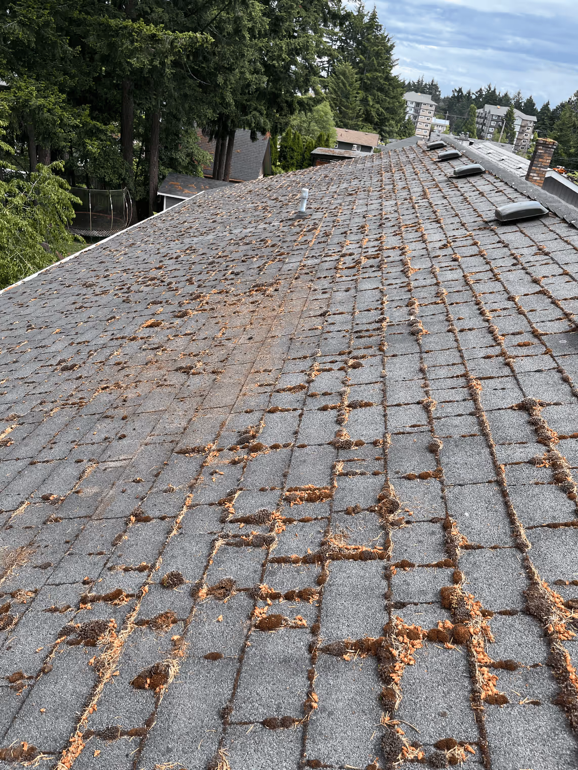 Our team uses a soft, controlled scrub to remove up to 90% of moss and organic growth, preserving your shingles while restoring your roof’s appearance. This hands-on method ensures no harsh pressure is used, which could otherwise damage your roof.